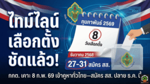 - ไทม์ไลน์ เลือกตั้ง 2569 ชัดแล้ว! กกต. เคาะ 8 ก.พ. 69 เข้าคูหาทั่วไทย สมัคร สส. ปลาย ธ.ค. นี้ ใครไม่อยากพลาดต้องอ่านให้จบ