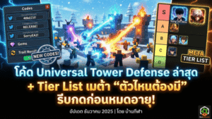 - โค้ด Universal Tower Defense ล่าสุด (ธันวาคม 2025) + Tier List เมต้า “ตัวไหนต้องมี” รีบกดก่อนหมดอายุ!