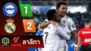 - บ้านผลบอล สรุปหลังเกม ลาลีกาเดือด! ชุดขาวแซงเฮที่เมนดิซอร์โรซา Mbappé–Rodrygo คนละตุง พาเรอัล มาดริดบุกเฉือนอลาเบส 2-1 จี้บาร์ซ่าหายใจรดต้นคอ