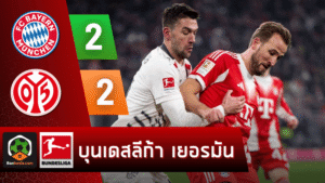 - บ้านผลบอล สรุปหลังเกม บุนเดสลีกา ดราม่าท้ายเกม เคนกู้จุดโทษ บาเยิร์นไล่เจ๊าไมนซ์ 2-2 ลุ้นฟอร์มจ่าฝูงต่อยาวๆ