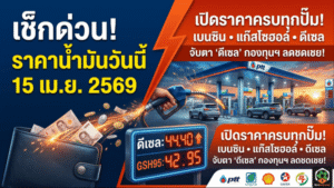 - ราคาน้ำมันวันนี้ 15 เม.ย. 69 เช็กครบทุกปั๊ม เบนซิน แก๊สโซฮอล์ ดีเซล ใครจะเติมวันนี้ต้องอ่าน