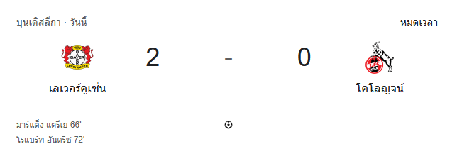 - นาทีที่ 95: หมดเวลา เลเวอร์คูเซ่น เปิดบ้านชนะ โคโลญจน์ 2-0
