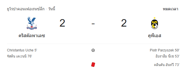 - หมดเวลา: คริสตัลพาเลซ 2-2 คูพีเอส