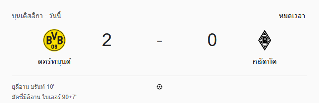 - หมดเวลา: ดอร์ทมุนด์ 2-0 กลัดบัค