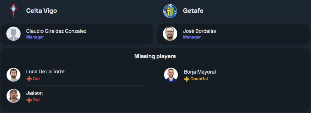 ฝั่งทีมเยือน เกตาเฟ่ กุนซือ โฆเซ่ บอร์ดาลาส ต้องขาดกองหน้าอย่าง บอร์ฆา มาโยรัล ที่ยังไม่ฟิตเต็มที่ แต่ผู้เล่นรายอื่นไม่มีปัญหาบาดเจ็บเพิ่มเติม คาดว่าจะใช้ระบบ 4-2-3-1 โดยมี เบอร์ตู ยิลดิริม เป็นตัวเป้าหมายในแนวรุก