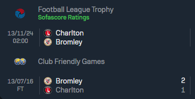 ย้อนกลับไปดูสถิติที่เคยเจอกันระหว่าง ชาร์ลตัน แอธเลติก กับ บรอมลีย์ ทั้งสองทีมเคยพบกันครั้งล่าสุดเมื่อปี 2016 โดยบรอมลีย์สามารถเอาชนะได้ด้วยสกอร์ 2-1 ซึ่งนับว่าเป็นเกมเดียวที่ทั้งสองทีมได้เผชิญหน้ากัน การเจอกันในครั้งนั้นบรอมลีย์สร้างเซอร์ไพรส์ด้วยการเก็บชัยชนะ แม้ว่าจะเป็นทีมจากดิวิชั่นต่ำกว่า แต่สำหรับครั้งนี้ ชาร์ลตันดูจะเป็นฝ่ายที่มีความได้เปรียบจากการเล่นในบ้านและระดับลีกที่สูงกว่า