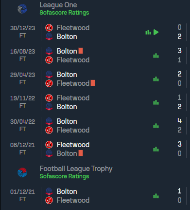 เมื่อย้อนดูสถิติการพบกันใน 10 นัดหลังสุด โบลตัน วอนเดอเรอร์ส ทำผลงานได้เหนือกว่าอย่างชัดเจน โดยเก็บชัยชนะไปถึง 7 นัด ส่วน ฟลีทวู้ด ทาวน์ ชนะได้เพียง 3 นัดเท่านั้น นัดล่าสุดที่พบกันในเดือนธันวาคมปีที่ผ่านมา โบลตันบุกไปเอาชนะฟลีทวู้ดด้วยสกอร์ 2-0 อีกทั้งในเกมเหย้าของโบลตันเอง พวกเขายังไม่เคยพลาดท่าให้ฟลีทวู้ดในช่วงหลัง สถิติเหล่านี้ชี้ชัดว่าเจ้าบ้านมีภาษีดีกว่ามาก