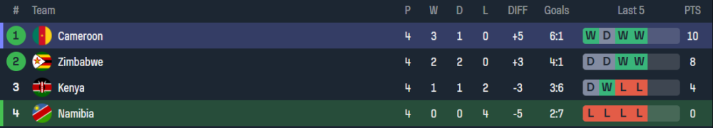 - อันดับในกลุ่ม: ที่ 4 (อันดับสุดท้าย)