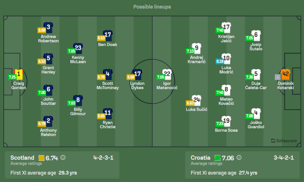 จากสถิติการพบกันล่าสุด โครเอเชียเป็นฝ่ายที่เก็บชัยชนะได้เหนือกว่า โดยในเกมล่าสุดพวกเขาเปิดบ้านชนะสกอตแลนด์ 2-1 นอกจากนี้ สกอตแลนด์ยังต้องเจ็บใจกับความพ่ายแพ้สองเกมติดต่อกันในการเจอกับทีมนี้ อย่างไรก็ตาม หากนับสถิติการพบกันทั้ง 5 เกมหลังสุด ทั้งสองทีมมีผลงานที่สูสีกันมาก โดย สกอตแลนด์ ชนะ 2 เกม เสมอ 1 เกม และแพ้ 2 เกม สถิติเหล่านี้บ่งบอกว่าเกมนี้จะเป็นอีกครั้งที่สูสีอย่างแน่นอน!
