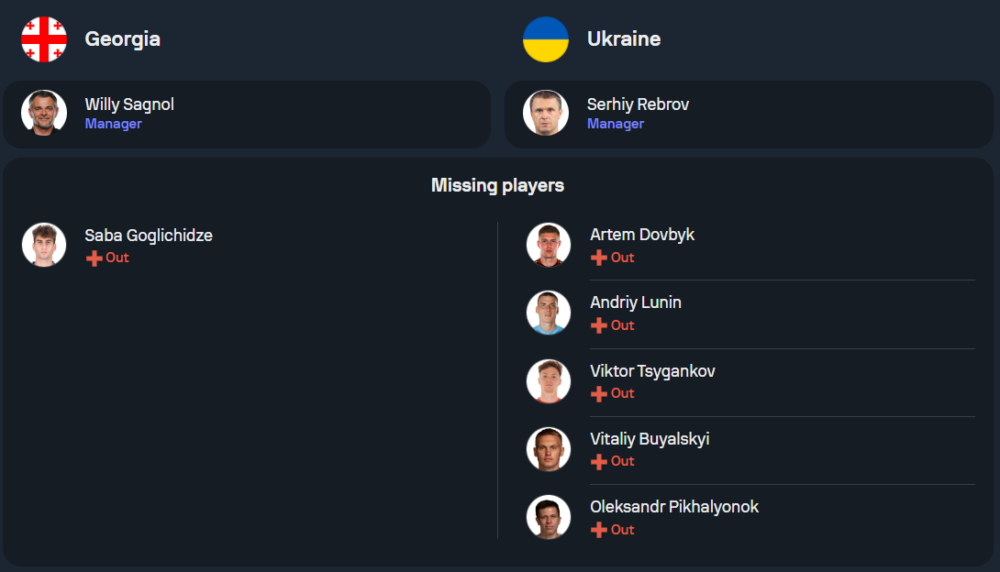 ยูเครนเริ่มมีความมั่นใจมากขึ้นหลังจากไม่แพ้ใครใน 2 นัดล่าสุด แต่ถึงแม้ฟอร์มจะดีขึ้น พวกเขาก็ยังคงอยู่ในตำแหน่งบ๊วยของกลุ่ม ซึ่งเป็นปัญหาสำคัญ การเล่นเป็นทีมเยือนก็ไม่ใช่เรื่องง่าย โดยเฉพาะเมื่อต้องเจอกับจอร์เจียที่กำลังต้องการชัยชนะในบ้านของตนเอง