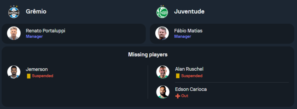 เจ้าบ้านเกรมิโอ้ เพิ่งพ่ายพัลไมรัส 0-1 ในเกมล่าสุด ทำให้ความกดดันในการเก็บแต้มเพิ่มขึ้น สำหรับสภาพทีมตอนนี้ ขาดผู้เล่นสำคัญอย่างเฮแมร์ซอน เด เฮซุส ที่ติดโทษแบน และยังมีนักเตะบาดเจ็บหลายราย ทั้งวอลเตอร์ กานเนมันน์, กุสตาโว่ มาร์ตินส์ และอันเดร เอนริเก้ คาดว่าจะมาในระบบ 4-2-3-1 โดยมีมาร์ติน เบรธเวตเป็นตัวจบสกอร์ และเอเดนิลซอน อันดราเด้ รับหน้าที่สร้างเกมรุก