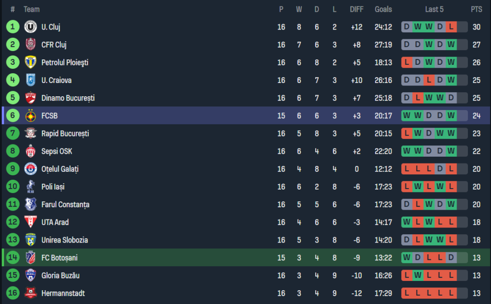 ฟอร์มล่าสุดของ สเตอัว บูคาเรสต์
