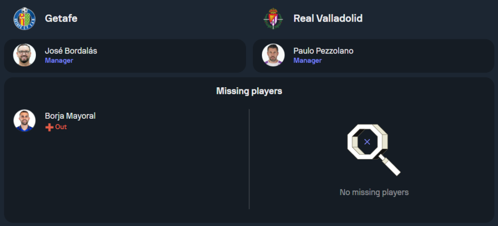 โฆเซ่ บอร์ดาลาส กุนซือของ เกตาเฟ่ มีข่าวดีเมื่อแนวรับตัวเก่งอย่าง ฆวน เบร์โรกัล พ้นโทษแบนกลับมาช่วยทีมได้ แต่ยังต้องรอลุ้นความฟิตของสองตัวหลักอย่าง บอร์ฆ่า มายอรัล และ เฌเน่ ดาโกนัม ที่อยู่ในระหว่างฟื้นฟูร่างกาย ทีมจะมาในระบบ 4-2-3-1 โดยมี คริสตันตุส อูเช่ เป็นกองหน้าตัวเป้าล่าตาข่าย