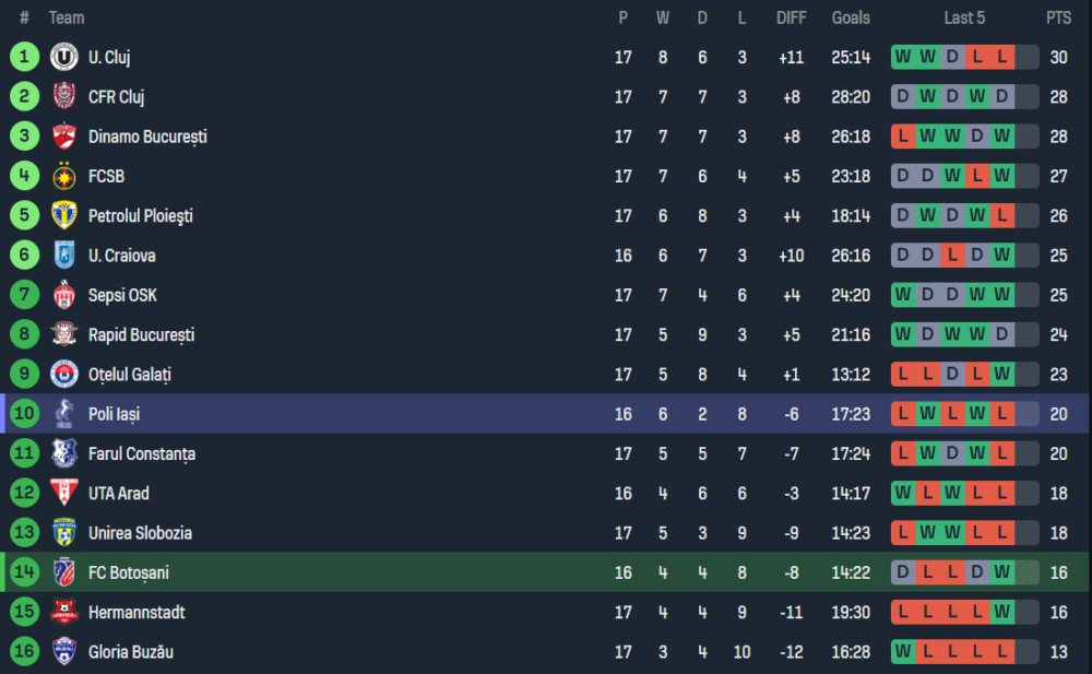 อันดับ 15 โซนตกชั้น ฟอร์มโดยรวมยังไม่น่าพอใจนัก แม้จะสามารถเก็บชัยในเกมล่าสุดที่ชนะ สเตอัว บูคาเรสต์ 1-0 แต่ก่อนหน้านั้นพวกเขาไม่ชนะใครเลยถึง 5 นัดติด เกมนี้จึงต้องการสานต่อโมเมนตัมที่ดีเพื่อเพิ่มความหวังในการหนีตกชั้น