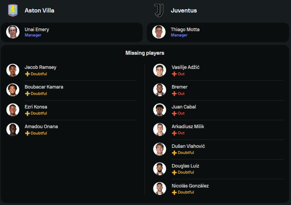 วิเคราะห์บอลสด ยูฟ่าแชมเปียนส์ลีก 2024 แอสตัน วิลล่า พบ ยูเวนตุส วันพฤหัสบดีที่ 28 พฤศจิกายน 2567 เวลา 03.00 น.