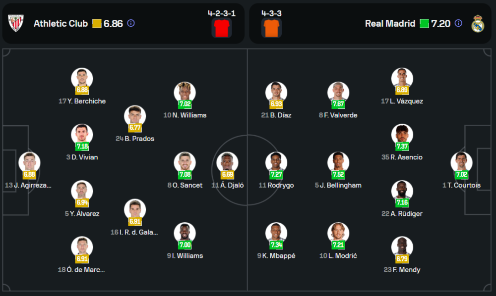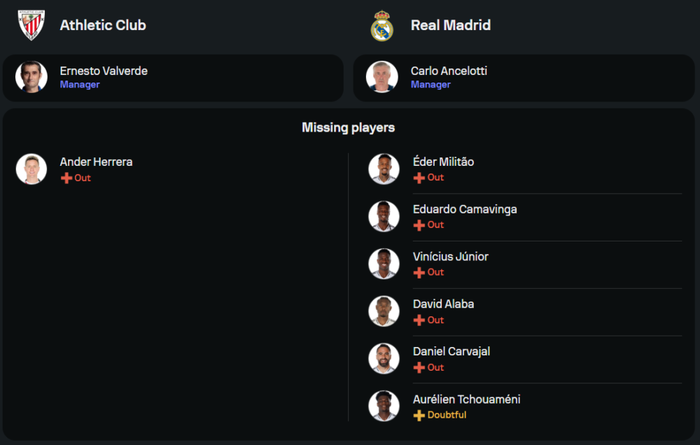 เรอัล มาดริด ภายใต้การคุมทีมของ คาร์โล อันเชล็อตติ แม้จะยังมีปัญหาผู้เล่นบาดเจ็บหลายราย เช่น วินิซิอุส จูเนียร์ และ เอแดร์ มิลิเตา แต่ฟอร์มการเล่นของทีมยังคงร้อนแรง โดยเฉพาะแนวรุกที่มีทั้ง คิเลียน เอ็มบัปเป้ และ โรดริโก้ พร้อมประสานงานร่วมกับ จู๊ด เบลลิงแฮม ในระบบ 4-3-3