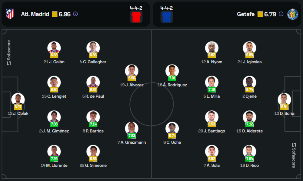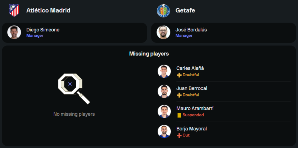 ทีมของ ดีเอโก้ ซิเมโอเน่ กำลังอยู่ในฟอร์มที่ยอดเยี่ยมหลังจากเก็บชัยชนะ 10 เกมรวดในทุกรายการ โดยเกมนี้ไม่มีปัญหาผู้เล่นบาดเจ็บหรือติดโทษแบนเพิ่มเติม ขุมกำลังหลักพร้อมลงสนามเต็มที่ในระบบ 4-4-2 แนวรุกนำโดย อองตวน กรีซมันน์ และ ฆูเลี่ยน อัลบาเรซ ขณะที่แดนกลางมี โรดริโก้ เด ปอล คอยคุมเกมร่วมกับ ปาโบล บาร์ริออส