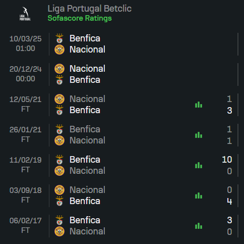 หากมองจากสถิติที่ผ่านมา เบนฟิก้า เป็นฝ่ายเหนือกว่าชัดเจน โดยเอาชนะนาซิอองนาลได้ถึง 8 จาก 10 นัดหลังสุด อย่างไรก็ตาม ทีเด็ดบอล ในการเจอกันครั้งนี้อาจเปลี่ยนแปลงได้ เพราะฟอร์มปัจจุบันของเบนฟิก้าเริ่มสะดุด ในขณะที่นาซิอองนาลมีความมั่นใจมากขึ้นจากการปลดล็อกชัยชนะในนัดล่าสุด