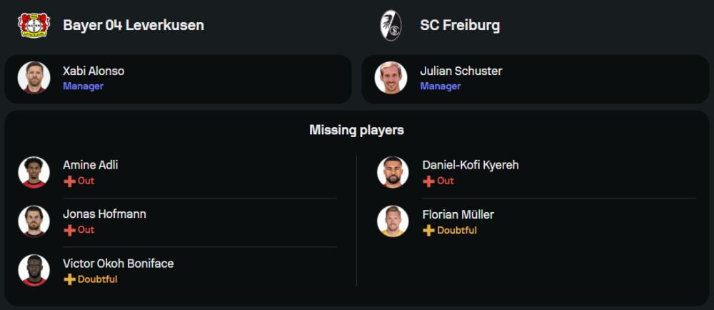 ทีมเยือน ไฟรบวร์ก ยังไม่สามารถรักษาฟอร์มให้สม่ำเสมอได้เท่าไหร่ แม้จะเพิ่งชนะ โวล์ฟสบวร์ก 3-2 ในเกมล่าสุด แต่ฟอร์มนอกบ้านยังน่าเป็นห่วง โดยในลีก 4 เกมหลังสุด พวกเขาไม่ชนะใครเลย คาดว่าเกมนี้ ยูเลี่ยน ชูสเตอร์ จะยังคงส่ง มิคาเอล เกรโกริตช์ เป็นหัวหอกตัวเป้า พร้อมสนับสนุนจาก ริทสึ โดอัน และ วินเชนโซ่ กริโฟ่
