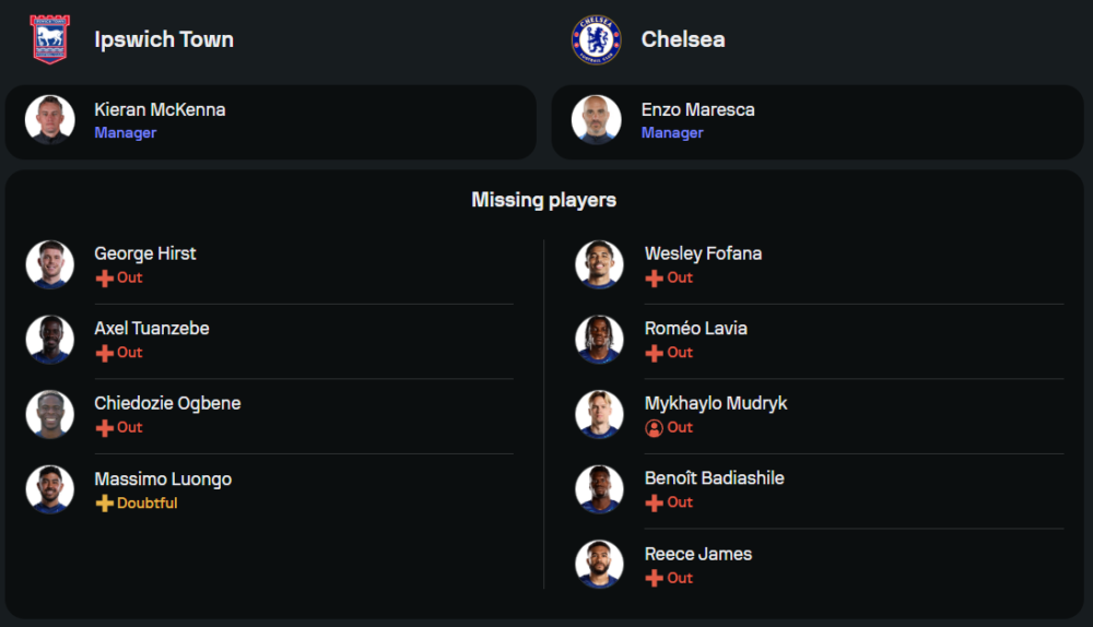 ทางฝั่งทีมเยือน เชลซี ของกุนซือ วินเซนโซ่ มาเรสก้า เพิ่งสะดุดพ่ายฟูแล่มในเกมล่าสุด สภาพทีมวันนี้จะได้ มาร์ก กูกูเรญ่า พ้นโทษแบนกลับมาประจำการ แต่ยังคงขาดสามแนวรับตัวหลักอย่าง เบอนัวต์ บาเดียชิล, รีซ เจมส์ และ เวสลี่ย์ โฟฟาน่า ที่บาดเจ็บ การจัดทัพจะยังคงยึดระบบ 4-2-3-1 โดยมี นิโคลัส แจ็คสัน ล่าตาข่าย และแนวรุกสามประสาน เปโดร เนโต้, โคล พัลเมอร์ และ เจดอน ซานโช่