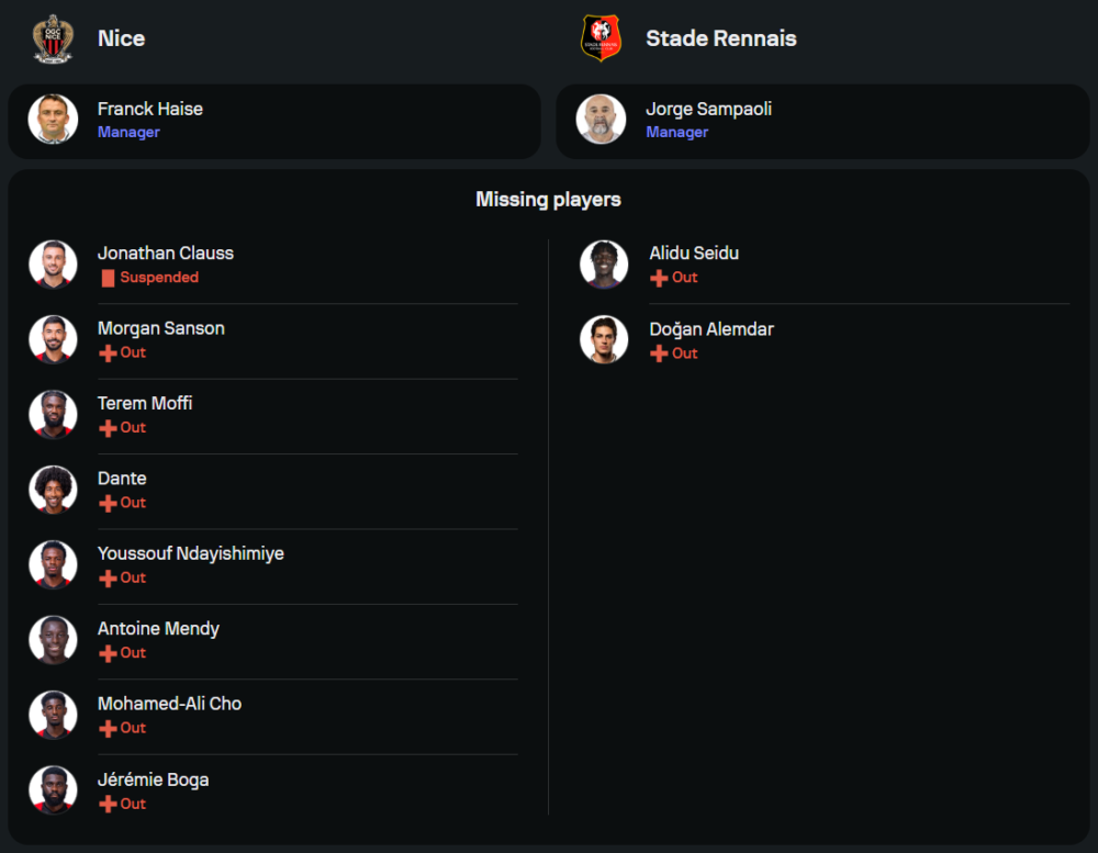 ในช่วงหลัง การพบกันระหว่าง นีซ และ แรนส์ เต็มไปด้วยความสูสี ผลัดกันแพ้ชนะ โดย 10 นัดล่าสุด นีซเอาชนะได้ 5 ครั้ง เสมอ 2 และแพ้ 3 เกม อย่างไรก็ตาม ในการเจอกันล่าสุดเมื่อเดือนมกราคมปีที่แล้ว แรนส์เอาชนะไปได้ 2-0 เกมนี้คาดว่าจะเป็นอีกครั้งที่ทั้งสองทีมต้องเปิดเกมบุกเพื่อคว้าชัย ทีเด็ดบอล ของเกมนี้จึงขึ้นอยู่กับการเล่นในแดนกลางที่แม่นยำ