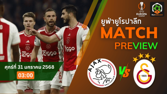 ค่ำคืนนี้ ยูฟ่ายูโรปาลีก 2024 เตรียมระอุ เมื่อ อาแจ็กซ์ อัมสเตอร์ดัม ทีมแกร่งจากเนเธอร์แลนด์ เปิดรัง โยฮัน ครัฟฟ์ อารีน่า รับการมาเยือนของ กาลาตาซาราย ยอดทีมจากตุรกี โดยเกมนี้มีผลอย่างมากต่อการลุ้นพื้นที่เพลย์ออฟและอาจส่งผลถึงอันดับสุดท้ายของกลุ่ม แข่งขันกันในคืนวันศุกร์ที่ 31 มกราคม 2568 เวลา 03.00 น. ตามเวลาประเทศไทย เกมนี้ถือเป็นศึกหนักของเจ้าบ้านที่ต้องสู้เต็มที่เพื่อโอกาสผ่านเข้ารอบ ในขณะที่กาลาตาซารายมาแบบมั่นใจและหวังจบอันดับที่ดีที่สุดในกลุ่ม แฟนบอลสามารถเช็กโปรแกรมแข่งขันได้ที่ ตารางบอลวันนี้ เพื่อไม่ให้พลาดแมตช์สำคัญ