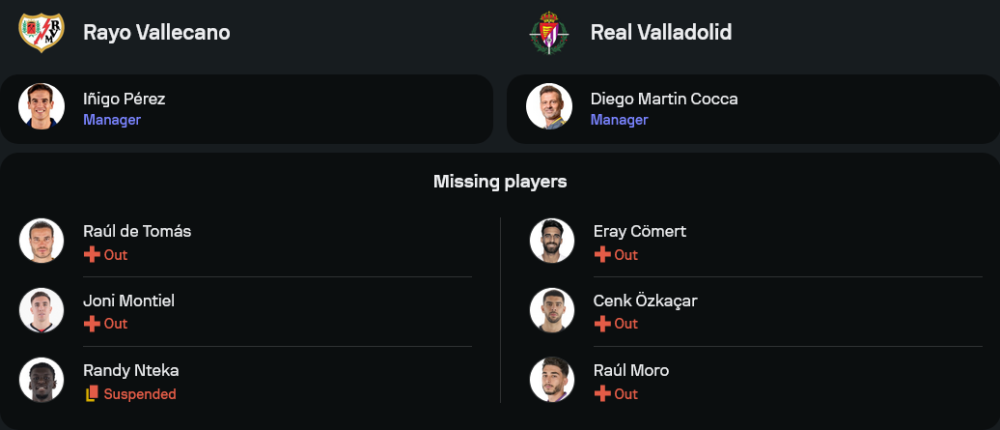 ลูกทีมของ อินญิโก้ เปเรซ กำลังอยู่ในช่วงฟอร์มที่ดี ล่าสุดบุกไปเฉือนชนะ เลกาเนส 1-0 ทำให้พวกเขาไม่แพ้ใครใน 4 นัดหลังสุด (ชนะ 3 เสมอ 1) อย่างไรก็ตาม เกมนี้ต้องเจอปัญหาเมื่อ แรนดี้ เอ็นเตก้า แนวรุกตัวเก่งติดโทษแบน ขณะที่ ราอูล เด โตมาส และ โฆนี่ มอนติเอล ยังอยู่ในลิสต์อาการบาดเจ็บ