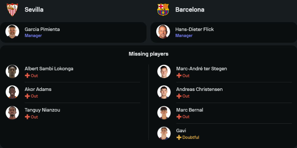 ด้าน ฮันส์-ดีเทอร์ ฟลิค ต้องปวดหัวเล็กน้อย เพราะขาด มาร์ก-อันเดร แทร์ สเตเก้น ที่เจ็บ ทำให้ วอยเชียค เชสนี่ ต้องรับหน้าที่มือหนึ่งแทน เช่นเดียวกับ อันเดรียส คริสเตนเซ่น และ มาร์ก เบอร์นัล ที่บาดเจ็บ ขณะที่แนวรุกมี โรเบิร์ต เลวานดอฟสกี้, ลามีน ยามาล, ราฟินญ่า และ เปดรี้ พร้อมจัดหนัก!