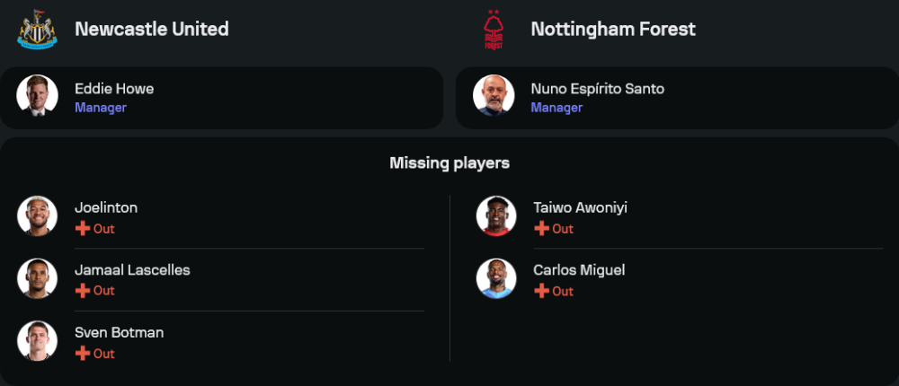 ลูกทีมของ เอ็ดดี้ ฮาว เพิ่งโดน แมนฯ ซิตี้ ถล่ม 4-0 ในเกมล่าสุด ส่งผลให้พวกเขาแพ้ถึง 3 จาก 4 เกมหลังสุด แถมสภาพทีมยังไม่สมบูรณ์ เนื่องจาก โจลินตัน, จามาล ลาสเซลล์ส และ สเวน บ็อตมัน ยังไม่หายจากอาการบาดเจ็บ อย่างไรก็ตาม พวกเขายังมีขุมกำลังหลักอย่าง อเล็กซานเดอร์ อิซัค, แอนโธนี่ กอร์ดอน และ จาค็อบ เมอร์ฟี่ คอยล่าตาข่าย ระบบ 4-3-3 จะถูกนำมาใช้เช่นเคย โดยมี บรูโน่ กีมาไรส์ เป็นแกนหลักในแดนกลาง