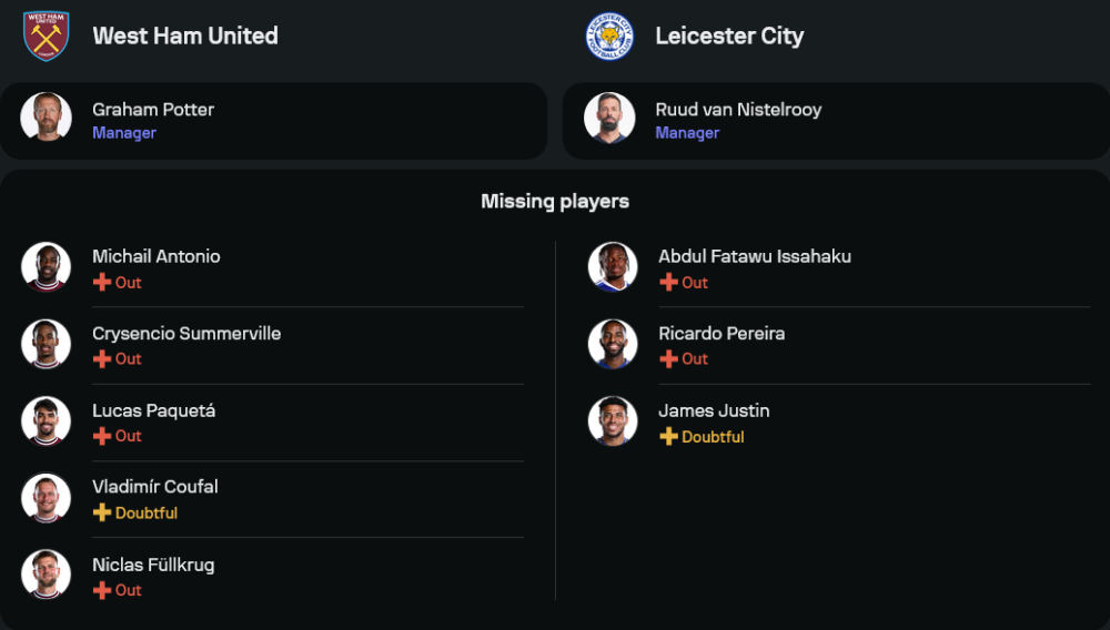 สกอร์ที่คาด: เวสต์แฮม 2-0 เลสเตอร์