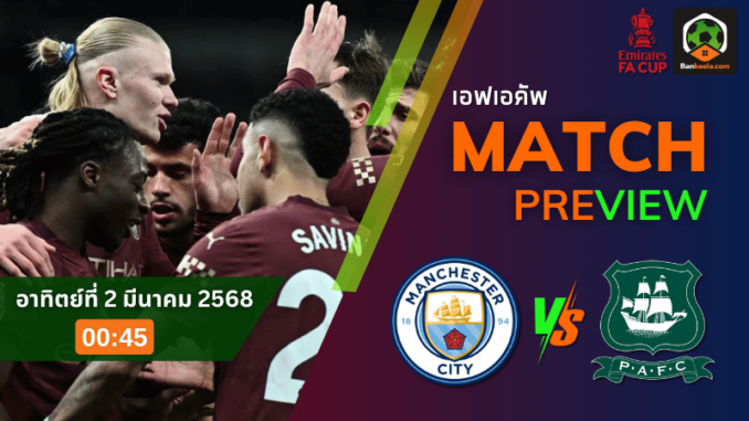 คืนวันอาทิตย์ที่ 2 มีนาคม 2568 แฟนบอลเตรียมตัวให้พร้อมกับ ศึกเอฟเอคัพ 2024 รอบนี้เป็นการเจอกันระหว่าง แมนเชสเตอร์ ซิตี้ ยอดทีมแห่งพรีเมียร์ลีก ที่เปิดบ้าน เอติฮัด สเตเดี้ยม รับมือ พลีมัธ อาร์ไกล์ ทีมจากแชมเปี้ยนชิพที่กำลังมาแรง ด้วยคุณภาพนักเตะที่แตกต่างกันชัดเจน เจ้าบ้านถูกยกให้เหนือกว่าทุกกระบวนท่า แต่บอลถ้วยแบบนี้อะไรก็เกิดขึ้นได้! แมตช์นี้แฟนบอลไม่ควรพลาด ตรวจสอบโปรแกรมการแข่งขันจาก ตารางบอลวันนี้ และรอระเบิดความมันส์ไปพร้อมกัน!