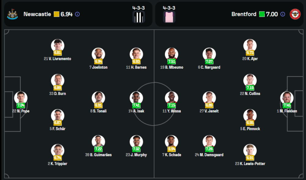 นิวคาสเซิ่ล ยูไนเต็ด ของกุนซือจอมวางแผน เอ็ดดี้ ฮาว ต้องเจอกับปัญหานักเตะบาดเจ็บและติดโทษแบนเล่นงานอย่างต่อเนื่อง โดยเฉพาะแนวรับที่เสียทั้ง สเวน บ็อตมัน, ลูอิส ฮอลล์ และ จามาล ลาสเซลล์ส ขณะที่แนวรุกก็หมดสิทธิ์ใช้งาน แอนโธนี่ กอร์ดอน ที่ติดโทษแบน ส่งผลให้แนวรุกต้องฝากความหวังไว้กับ อิซัค, เมอร์ฟี่ และ บาร์นส์ ที่จะเป็นสามประสานในระบบ 4-3-3 โดยมี ซานโดร โตนาลี่ คุมเกมกลางสนามอย่างเข้มข้น