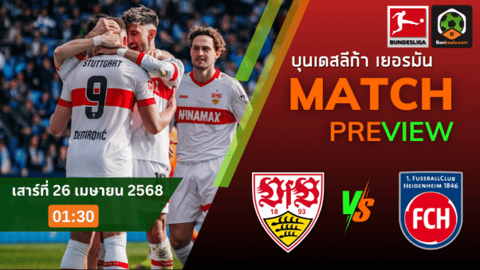 คืนวันเสาร์ที่ 26 เมษายน 2568 นี้ แฟนบอลบุนเดสลีกาห้ามพลาด! เมื่อ “ม้าขาว” สตุ๊ตการ์ต เตรียมเปิดสนามต้อนรับการมาเยือนของ ไฮเด้นไฮม์ ทีมที่ยังต้องดิ้นรนหนีตกชั้นอย่างหนักในซีซั่นนี้ โดยเกมจะเริ่มฟาดแข้งเวลา 01:30 น. ตามเวลาในประเทศไทย และถือเป็นอีกหนึ่งคู่ที่น่าสนใจบนหน้าจอแฟนบอลที่ติดตาม ตารางบอลวันนี้ อย่างใกล้ชิด เพราะทั้งสองทีมต่างมีเดิมพันที่ใหญ่หลวงรออยู่