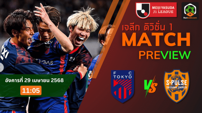ดูบอลสดเจลีก ดิวิชัน 1 2025 ถ่ายทอดสด เอฟซี โตเกียว พบ ชิมิสุ เอส-พัลส์ 29/4/68 – บ้านกีฬา