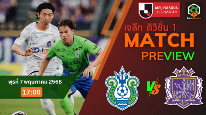 กลางสัปดาห์นี้แฟนบอลแดนปลาดิบเตรียมระเบิดอารมณ์เชียร์ได้เลย เพราะศึก เจลีก ดิวิชัน 1 ฤดูกาล 2025 วันพุธที่ 7 พฤษภาคมนี้ เวลา 17:00 น. จะเป็นการโคจรมาเจอกันของสองทีมที่กำลังดิ้นรนหาทางกลับเข้าสู่เส้นทางลุ้นพื้นที่หัวตารางอีกครั้ง เมื่อ โชนัน เบลมาเร่ ต้องเฝ้ารังรับการมาเยือนของ ซานเฟรซเซ ฮิโรชิม่า ทีมที่เพิ่งหยุดสถิติพ่ายรวดได้สำเร็จในเกมล่าสุด