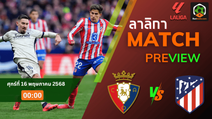 ศึกลาลีกาสเปนค่ำคืนวันที่ 16 พฤษภาคม 2568 เวลา 00:00 น. จะระเบิดความมันขึ้นที่สนามของโอซาซูน่า โดยเจ้าบ้านเตรียมเปิดรังรับการมาเยือนของทีมฟอร์มแรงอย่าง แอตเลติโก้ มาดริด ความเดือดไม่ใช่แค่เพราะชื่อชั้นของทั้งสองทีม แต่สถานการณ์ลุ้นอันดับเพื่อพื้นที่ยุโรปยังเข้มข้นถึงขีดสุด โดยราคาบอลวันนี้เปิดมาแบบน่าสนใจที่ “ทีมเยือน ต่อ 0.5” ซึ่งกลายเป็นอีกหนึ่งคู่ที่น่าจับตามองบนหน้า ตารางบอลวันนี้ ที่เหล่าแฟนบอลห้ามพลาดด้วยประการทั้งปวง