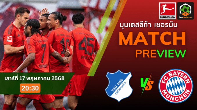 วิเคราะห์บอลวันนี้บาเยิร์น มิวนิค พร้อมถล่มส่งท้าย ฮอฟเฟ่นไฮม์ ใต้ความกดดันหนีตาย! ศึกบุนเดสลีกา 2025 บิ๊กแมตช์เดือดประจำค่ำคืนนี้