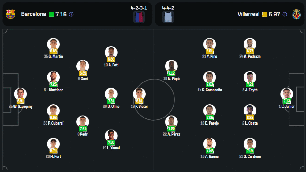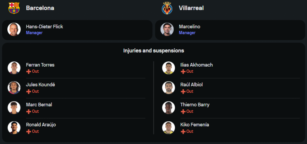 ลูกทีมของ ฮันส์-ดีเตอร์ ฟลิค หมดห่วงเรื่องแชมป์ไปแล้วแต่ต้องเน้นใส่เต็มที่เพราะนี่คือเกมสุดท้ายในบ้านต่อหน้าแฟนๆ แกนหลักแนวรุกจัดเต็ม! เลวานดอฟสกี้ จ่อจบฤดูกาลด้วยความมั่นใจ ริมเส้นยังมี ลามีน ยามาล ฟอร์มฮอต ส่วนแดนกลาง เปดรี้, กาบี จัดเต็มพร้อมลากไส้แนวรับคู่แข่ง แนวหลังอาจขาด โรนัลด์ อเราโฆ่, เฟร์ราน ตอร์เรส และมาร์ก เบอร์นัล แต่ อินญิโก้ มาร์ติเนซ กลับมาสตาร์ทตัวจริงพอดี ระบบ 4-2-3-1 ใส่ดุดันทุกตำแหน่ง!
