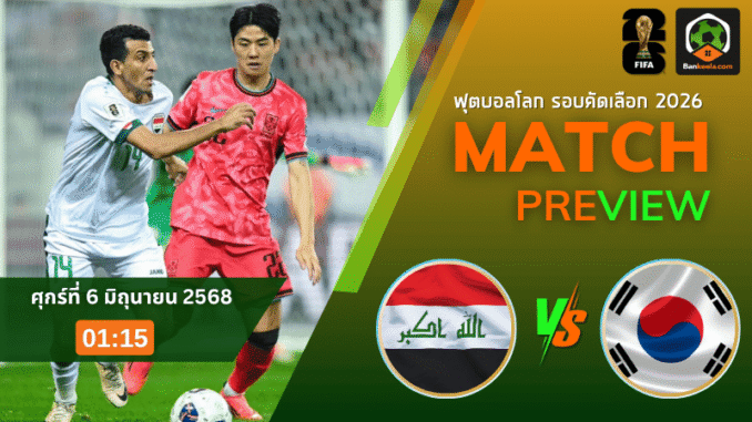 เมื่อฟุตบอลโลก 2026 รอบคัดเลือกโซนเอเชีย “กลุ่ม B” เดินทางมาถึงโค้งสุดท้าย ศึกใหญ่ระหว่าง “อิรัก” เปิดรังรับมือ “เกาหลีใต้” ในคืนวันศุกร์ที่ 6 มิถุนายน 2568 เวลา 01:15 น. คือศึกที่ไม่ควรพลาดด้วยประการทั้งปวง! สองทีมที่สถานการณ์ในกลุ่มต่างก็ลุ้นระทึก ผลแพ้-ชนะ-เสมอ ส่งผลชี้เป็นชี้ตายต่อโอกาสทะลุเข้ารอบสุดท้ายฟุตบอลโลก
