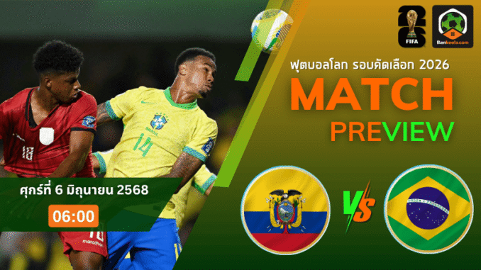 บรรยากาศสุดเข้มข้นกำลังคุกรุ่นในศึกฟุตบอลโลก 2026 รอบคัดเลือก โซนอเมริกาใต้ คืนวันศุกร์ที่ 6 มิถุนายน 2568 เวลา 06:00 น. เมื่อสองยักษ์ใหญ่ เอกวาดอร์ เปิดรังเหย้าท้าชน บราซิล ดีกรีแชมป์โลก 5 สมัย ในเกมที่ “มีทุกอย่างให้ลุ้น” ทั้งเรื่องอันดับ, ศักดิ์ศรี, และความหวังของแฟนบอลทั้งประเทศ! ศึกนี้ไม่ใช่แค่เกมธรรมดา เพราะอันดับใน ตารางคะแนน ตอนนี้ เอกวาดอร์ ยึดรองจ่าฝูง ขณะที่บราซิลตกมาอยู่อันดับ 4 และคะแนนกำลังเบียดกันสุดขีด ความดุของศึกนี้จึงติดโผ ตารางบอลวันนี้ แบบห้ามพลาดเด็ดขาด