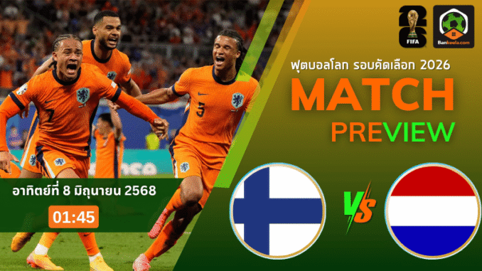 ศึกครั้งนี้สำคัญสุดๆ ต่อโอกาสเข้ารอบ โดยฟินแลนด์ออกสตาร์ทได้ไม่เลว ชนะ 1 เสมอ 1 มี 4 แต้ม อยู่อันดับ 2 ของกลุ่ม G ส่วนเนเธอร์แลนด์ยังไม่ได้ประเดิมเกมในกลุ่ม แต่ภาพรวมขุมกำลังยังคงอัดแน่นไปด้วยสตาร์ระดับโลก แม้จะขาดตัวหลักไปบ้างแต่ชื่อชั้นก็ยังดูเหนือกว่า หากวัดกันตามสายตา ราคาบอล ยังชี้ชัดว่าผู้มาเยือนมีโอกาสเฮเก็บสามแต้มออกไปสูงกว่า