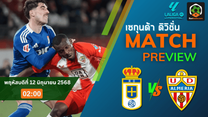 ค่ำคืนวันพฤหัสบดีที่ 12 มิถุนายน 2568 นี้ คอลูกหนังห้ามพลาดเด็ดขาด! เพราะในศึก เซกุนด้า ดิวิชั่น สเปน จะมีเกมเดือดที่เดิมพันสูงระหว่าง เรอัล โอเบียโด้ ทีมอันดับ 3 ของตาราง เปิดสนาม นูเอโบ้ การ์ลอส ตาร์ติเอเร่ รับมือ อัลเมเรีย อันดับ 6 ที่กำลังไล่ล่าความหวังสุดท้ายในการทะยานสู่รอบชิงตั๋วเลื่อนชั้น โดยผลนัดแรกเป็นโอเบียโด้ที่บุกไปคว้าชัย 2-1 ทำให้สถานการณ์กลับมาเป็นใจฝั่งเจ้าถิ่นเต็มพิกัด แถมราคาบอลวันนี้เปิดมาแบบ “เสมอ” ก็ยิ่งชวนให้คิดหนักว่าใครจะเอาชนะในเกมแห่งความกดดันนี้ได้สำเร็จ ตารางโปรแกรมบอลวันนี้คู่นี้ถือเป็นหนึ่งในคู่ไฮไลท์ที่ไม่ควรมองข้าม!