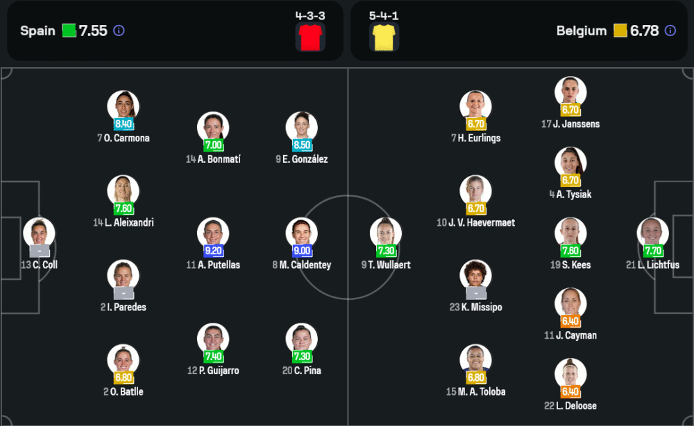 สเปนหญิง เจ้าของแชมป์โลกชุดล่าสุดยังคงเต็มไปด้วยขุมกำลังแกร่งทั่วแผ่น แม้ยังต้องรอเช็คฟิตของกาต้า คอลล์ ผู้รักษาประตูตัวหลักที่มีอาการป่วยและอัลบ้า เรดอนโด้ หอกตัวจี๊ดที่ยังไม่สมบูรณ์เต็มร้อย แต่คาดว่าทีมจะยังยึดแกนหลักจากเกมแรกนำโดย อเล็กเซีย ปูเตญาส, อาอิตาน่า บอนมาติ และเอสเธร์ กอนซาเลซ