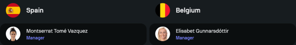 เบลเยียมหญิง แม้พวกเธอจะไร้ปัญหาเรื่องตัวเจ็บ แต่สภาพจิตใจยังไม่ฟื้นจากเกมพ่ายอิตาลี ดาวยิงตัวเก๋า เทสซ่า วุลลาเอร์ต ยังเป็นความหวังสูงสุดในแดนหน้า โดยเอลิซาเบต กุนนาร์สด็อตติร์ กุนซือชาวไอซ์แลนด์คงจะวางหมากรัดกุมด้วยแนวรับ 5 คน และอาศัยจังหวะโต้กลับเป็นหลักเช่นเดิม