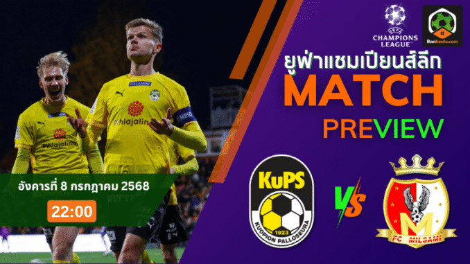 ฟุตบอลยูฟ่าแชมเปียนส์ลีก รอบคัดเลือก รอบแรก เลกแรก คืนวันอังคารที่ 8 กรกฎาคม 2568 เวลา 22:00 น. ณ สนามกลาง เอ็นอาร์จี สเตเดี้ยม เตรียมระเบิดศึกระหว่าง คูพีเอส จากฟินแลนด์ ปะทะเดือดกับ มิลซามี่ ตัวแทนจากมอลโดว่า ราคาต่อรองออกมาแบบชัดถ้อยชัดคำให้ฝั่งคูพีเอสเป็นต่อ 1.25 ลูกเต็มๆ แฟนบอลที่กำลังตามเช็ค ตารางบอลวันนี้ บอกได้เลยว่าคู่นี้ไม่ควรพลาด เพราะเกมนี้อัดแน่นไปด้วยเดิมพันสำคัญ สองทีมต่างมุ่งหน้าหาหนทางเข้าสู่รอบถัดไปด้วยความกระหายชัยชนะแบบสุดขีด และนี่อาจเป็นจุดเริ่มต้นของเส้นทางความฝันสู่รอบแบ่งกลุ่มในฤดูกาลนี้