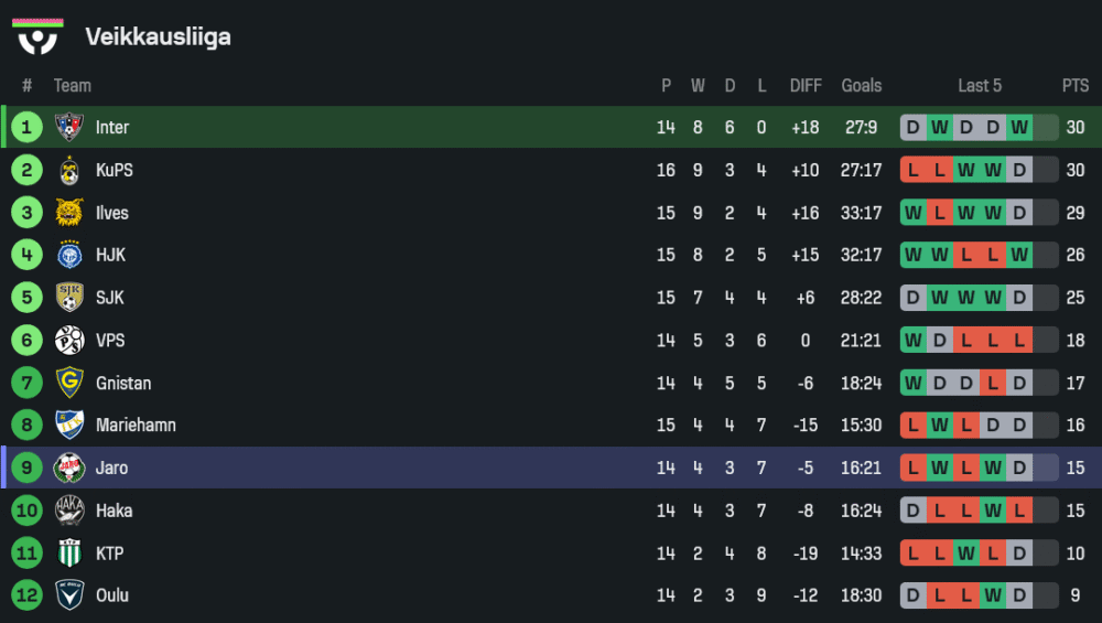 ศึก ไวเคาส์ลีกา ฟินแลนด์ คืนวันเสาร์ที่ 12 กรกฎาคมนี้ มีคิวระเบิดความมันเมื่อ อินเตอร์ ตูร์คู จ่าฝูงไร้พ่ายของลีก เตรียมเปิดรัง เวริตาส สตาดิโอน ต้อนรับการมาเยือนของ ยาโร ทีมอันดับ 9 ที่กำลังดิ้นรนหาความสม่ำเสมอ เกมนี้เตะเวลา 21:00 น. ตามเวลาไทย และบ่อนเปิดเรต ราคาบอล ให้ อินเตอร์ ตูร์คู ต่อถึง 1.5 ลูก เรียกว่ากดดันเต็มที่กับการเก็บสามแต้มให้สมราคา การลุ้นในคู่เดือดแบบนี้ห้ามพลาดส่องใน ตารางบอลวันนี้ เพราะมีลุ้นทั้งสกอร์และราคาแบบมันส์ทะลุจอแน่นอน