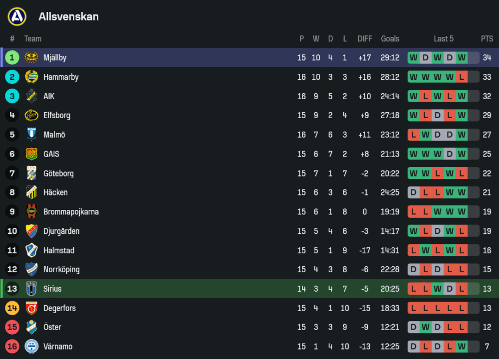 ซิริอุส เจ้าถิ่นที่นำทัพโดยกุนซือ อันเดรียส เองเกลมาร์ค ฟอร์มในลีก 5 นัดหลังสะดุดหนัก ชนะเพียงเกมเดียว สภาพทีมถือว่าไร้ปัญหา เจ็บแบนไม่มี คาดว่าจะจัดระบบ 4-3-3 มั่นใจแดนกลางมี เมลเกอร์ ไฮเออร์ คุมจังหวะ ส่วนแนวรุกส่ง โยคิม เพอร์สสัน, ร็อบบี อูเร และอิซัค เบียร์เคโบ ลงล่าสกอร์