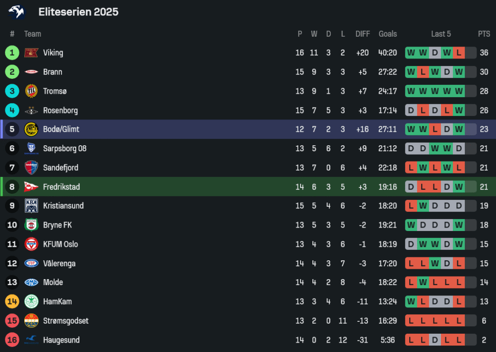 ค่ำคืนวันพุธที่ 16 กรกฎาคม 2568 เวลา 23:00 น. ที่สนาม นีเย่ เฟรดริคสตัด สตาดิโอน จะระอุไปด้วยไฟศึกแห่ง นอร์เวย์ ทิปเปลีเก้น เมื่อเจ้าถิ่น เฟรดริคสตัด ทีมอันดับ 8 ของตาราง เตรียมเปิดบ้านท้าชน โบโด กลิมท์ ยักษ์ใหญ่จากแดนเหนือที่รั้งอันดับ 5 เกมนี้ถือเป็นบททดสอบครั้งสำคัญของเจ้าถิ่น หลังเพิ่งเรียกความมั่นใจด้วยการอัดโมลด์มาสุดมันส์ 4-2 ขณะที่ทีมเยือนก็กำลังเครื่องร้อนเช่นกัน ราคาต่อรองล่าสุดขยับมาที่ โบโด กลิมท์ ต่อ 1-5 ทำให้ในโพย ตารางบอลวันนี้ จับตามองเกมนี้เป็นพิเศษเพราะทั้งสองทีมต่างต้องการแต้มเพื่อไล่ล่าโควตายุโรป