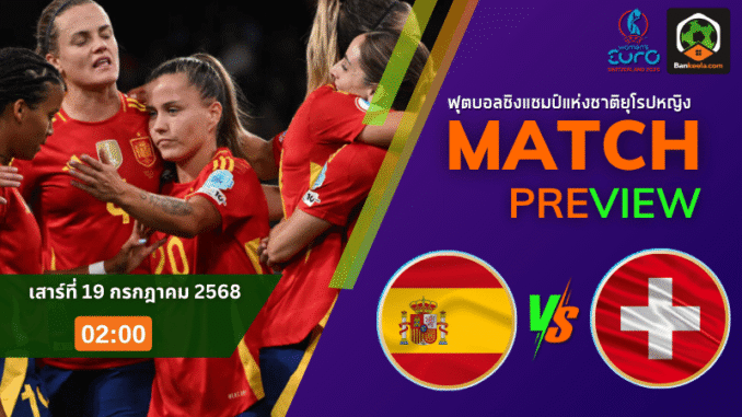 ค่ำคืนเสาร์นี้ศึกลูกหนังหญิงแห่งยุโรปจะระอุขึ้นอีกครั้ง เมื่อ ทีมชาติสเปนหญิง แชมป์โลกและเต็งแชมป์ของรายการนี้ เตรียมเปิดศึกชนกับ สวิตเซอร์แลนด์หญิง รอบ 8 ทีมสุดท้ายฟุตบอลหญิงชิงแชมป์แห่งชาติยุโรป ณ สนามกลางในเวลาตีสองตรงตามเวลาประเทศไทย แฟนบอลเตรียมตามเช็ก ตารางบอลวันนี้ กันให้พร้อม เพราะเกมนี้ราคาบอลวันนี้ ยกให้ สเปนหญิง ต่อถึง 2 ลูกครึ่ง สะท้อนความเหนือชั้นของทัพกระทิงสาวแบบเต็มเปา แต่ในรอบน็อกเอาต์แบบนี้ อะไรก็เกิดขึ้นได้ทั้งนั้น