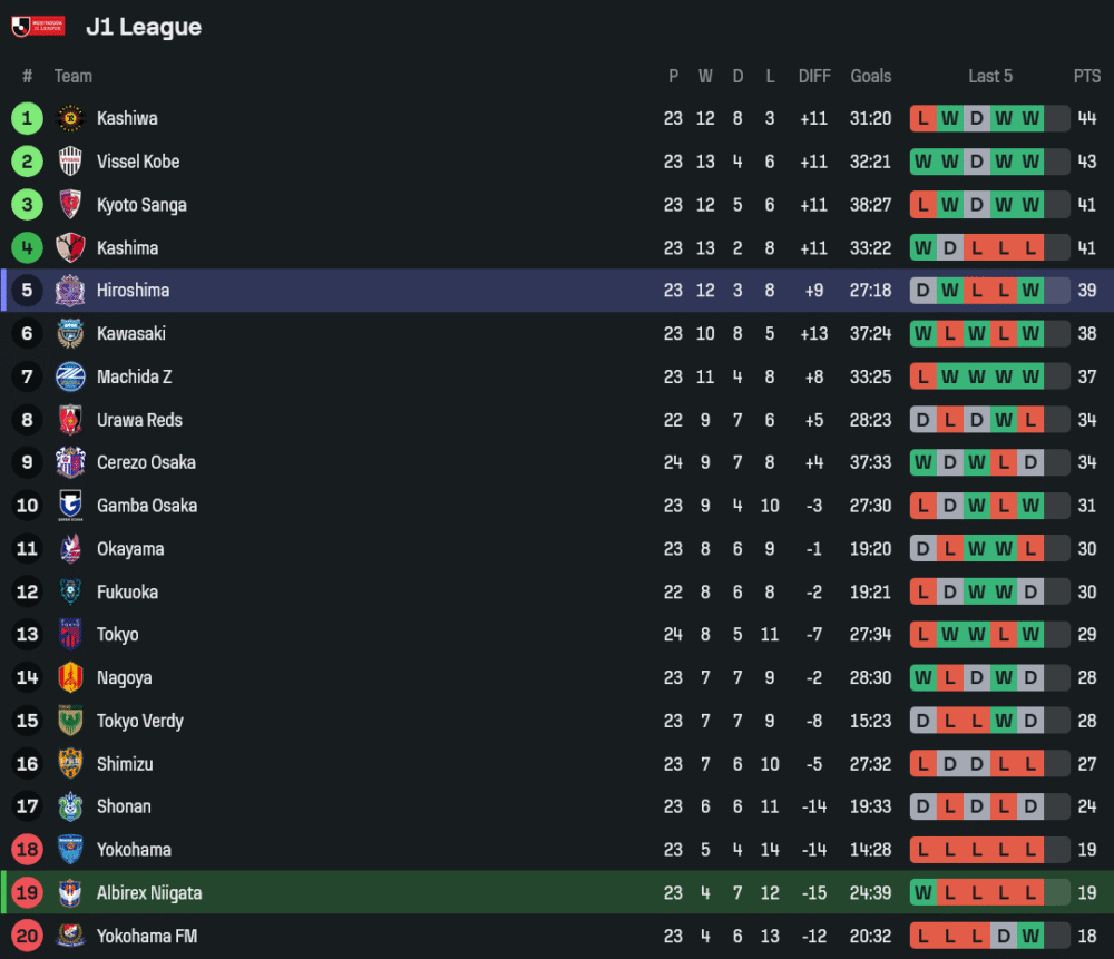 ศึกเจลีกเดือด! อัลบิเร็กซ์ นิงาตะ วัดคม ซานเฟรซเซ่ ฮิโรชิม่า เกมนี้ใครอยู่ใครไป